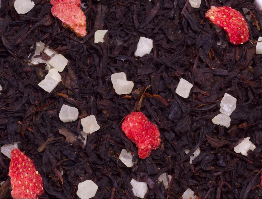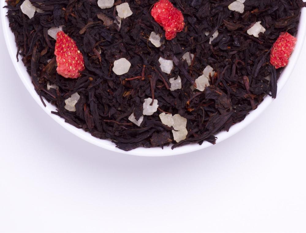 Состав: чай черный, сушеная клубника, цукаты