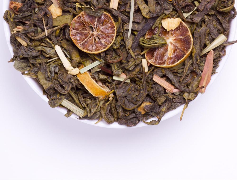 Состав: лимон сегмент, лимон цедра, лимон трава, зелёный чай.