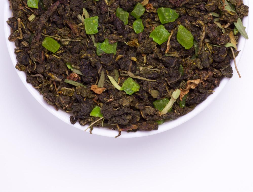 Состав: зелёный чай те гуань инь, тархун листья и цукаты киви