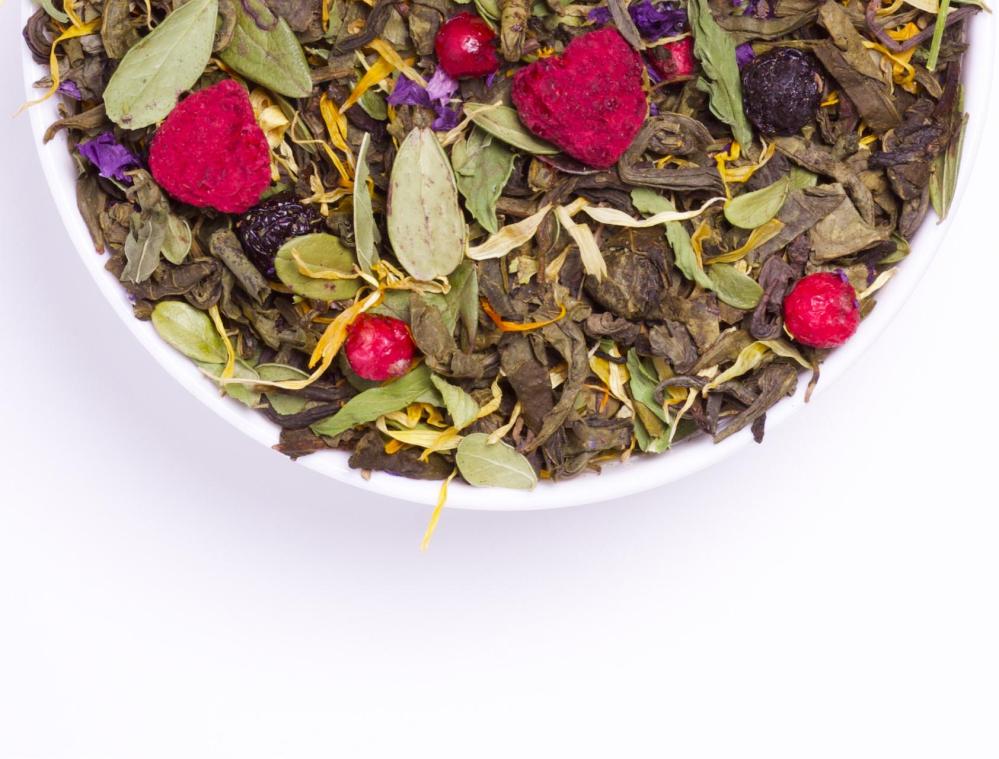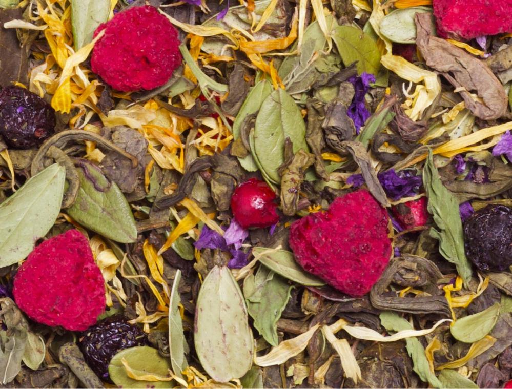 Состав: чай зелёный, боярышника плоды, листья брусники, календулы лепестки, цветки мальвы, мята сушёная, малина сушёная, смородина сушёная.